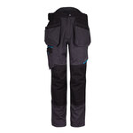 - Contemporary work trouser featuring clever holster pockets for ample storage and security. Made from durable poly-cotton canvas fabric and includes triple stitched seams, these trousers have a multitude of practical features including two-tier knee pad pockets, a high rise back waistband and an adjustable leg hem for added convenience. Innovative stretch panelling provides excellent comfort and flexibility in key movement areas.